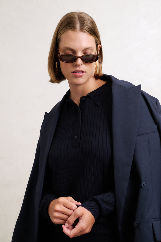 Inspired by our favorite Alaia midi, now reimagined as a top for those who love a matching set :) Introducing Ora — our signature rib-knit polo, crafted from luxe, soft fabric for all-day comfort and easygoing style. With its long sleeves and easy silhouette, Ora adds a polished, laid-back edge to any look—day or night.