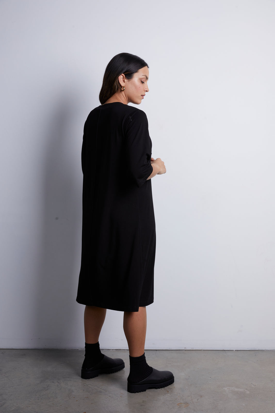 We created this piece for your everyday. Cut from a heaven jersey fabric, this shift dress gives a luxurious nod to workwear. Think of an effortless staple dress that you'll be reaching for again and again.
