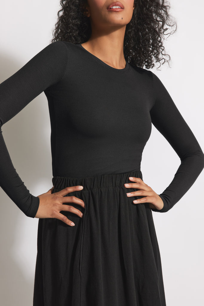 Now imagine it in a snug top that'll keep you cozy year round. Pair it with our Tal Jumper, Sofia skirt, or any other piece in your closet. It's the easiest basic + the fabric is so soft you'll never want to take off.