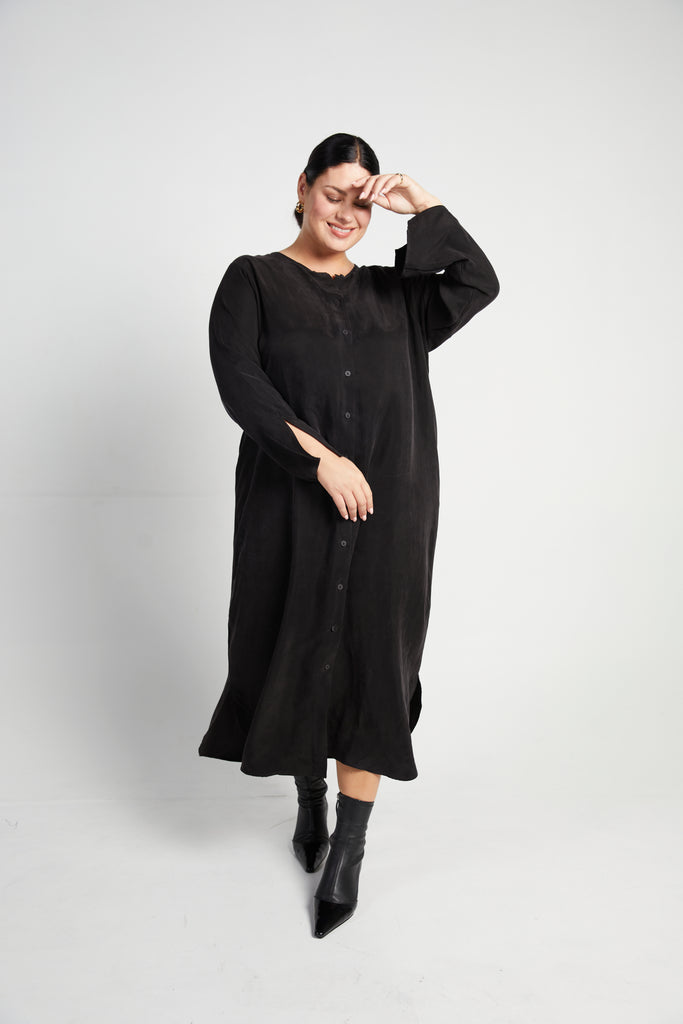 The Solène Midi exudes effortless elegance. Crafted with a luxurious silky cupro, it's perfect for holidays, date nights, or a lovely evening out. Embrace its luxurious comfort and sophisticated style, exuding confidence and charm whether you're exploring new destinations or enjoying a night out. Solène adds an extra touch of allure to your ensemble.