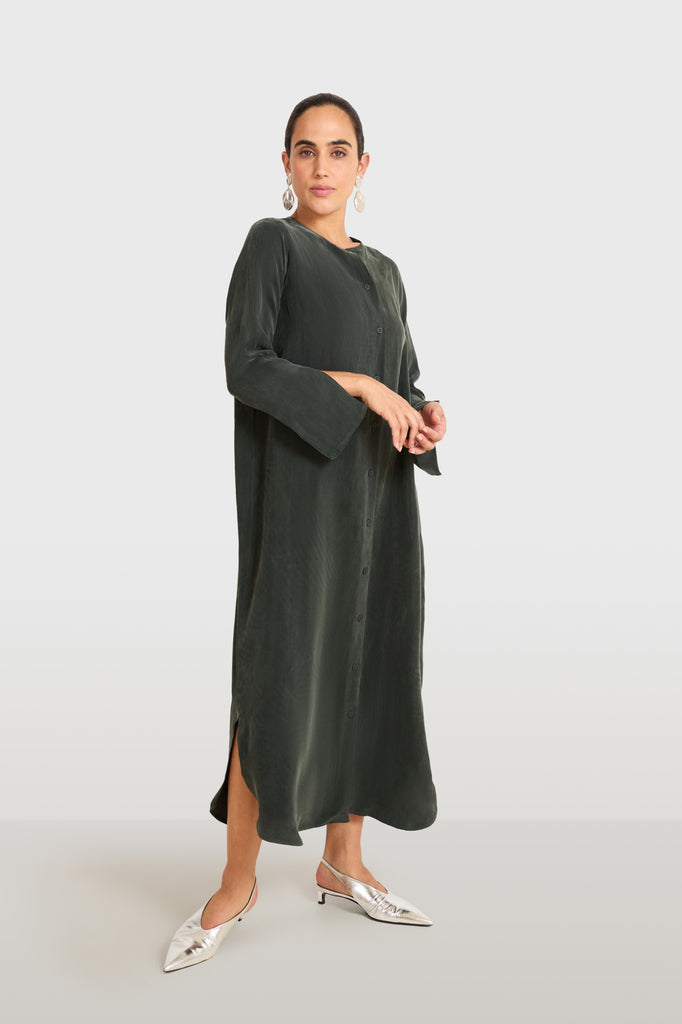 The Solène Midi exudes effortless elegance. Crafted with a luxurious silky cupro, it's perfect for holidays, date nights, or a lovely evening out. Embrace its luxurious comfort and sophisticated style, exuding confidence and charm whether you're exploring new destinations or enjoying a night out. Solène adds an extra touch of allure to your ensemble.