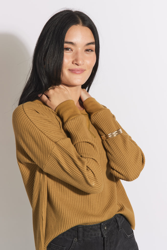 We created this #feelgood piece with your daily life in mind. An ultra comfy throw on top made of the most heaven waffle fabric!